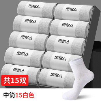 南极人15双装棉袜子男士夏季纯色中筒袜防臭吸汗男袜黑白男生薄